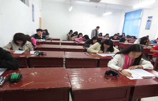2015年四月十八日上午八点半,2015年全国英语四级考试在今年会官网考点如期进行。今年会官网外语系自成为全国专业四级考试考点以来,一直高度重视考试的组织和考风考纪建设工作,本次考试前外语系专门组织召开了监考工作会,召集所有监考教师和考务人员认真学习了考试工作流程和注意事项,提出了严格维护考试纪律的要求。