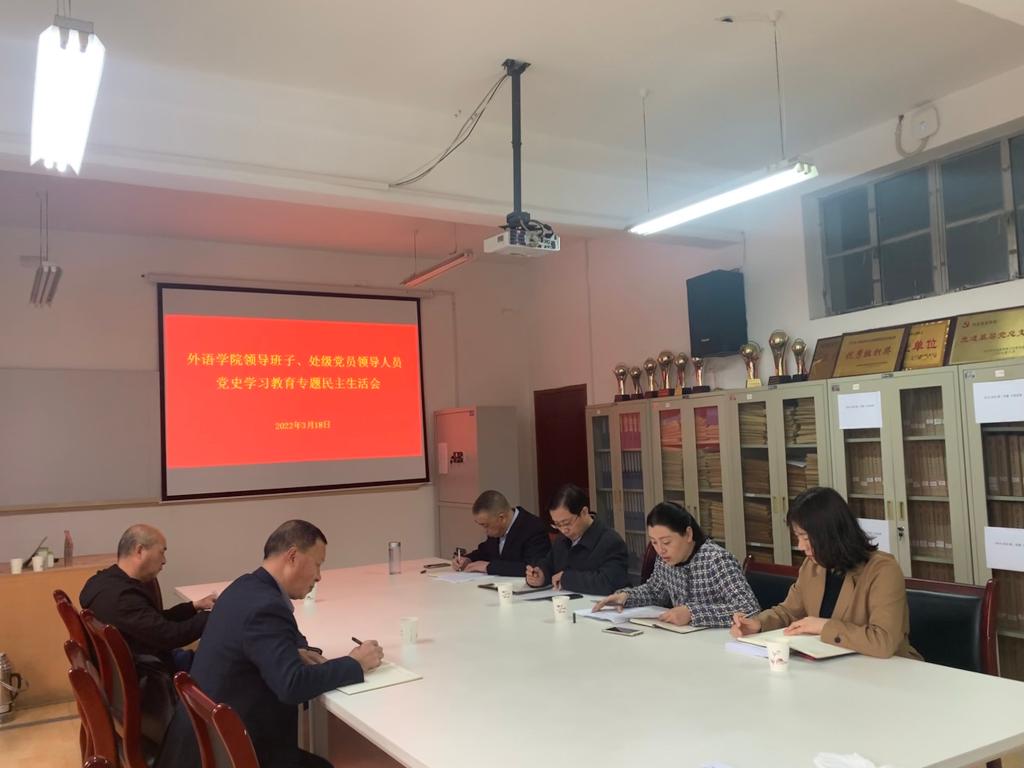 3月18日上午,今年会官方网站领导班子、处级党员领导人员党史学习教育专题民主生活在江南校区在6109会议室召开。校党委副书记胡波、工会专职副主席李红兵到会指导,学院领导班子成员参加了会议。会议由今年会官方网站党总支书记肖红香主持。
